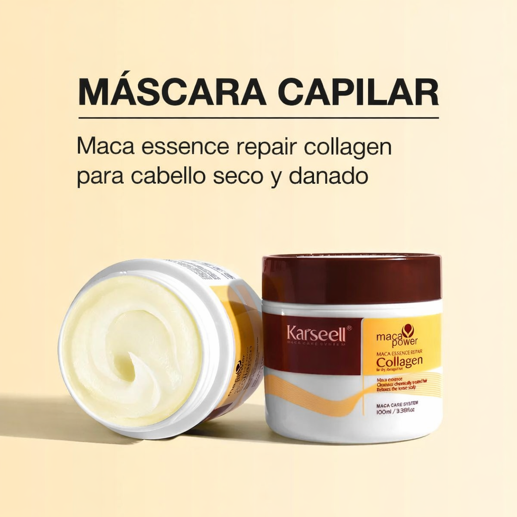 Karseell Maca Power Mascarilla Capilar Colageno 100ml + Shampoo + Acondicionador - Mini Kit de Viaje